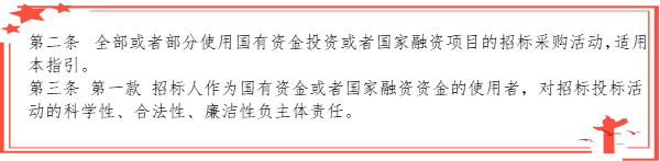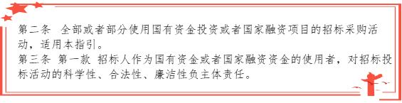 全部或部分使用国有资金或国家融资的项目,强调招标人对招标活动的科学性、合法性、廉洁性负主体责任。