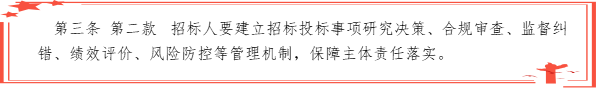 招标人应设立研究决策、合规审查、监督纠错、绩效评价、风险防控等机制,保障主体责任落实。